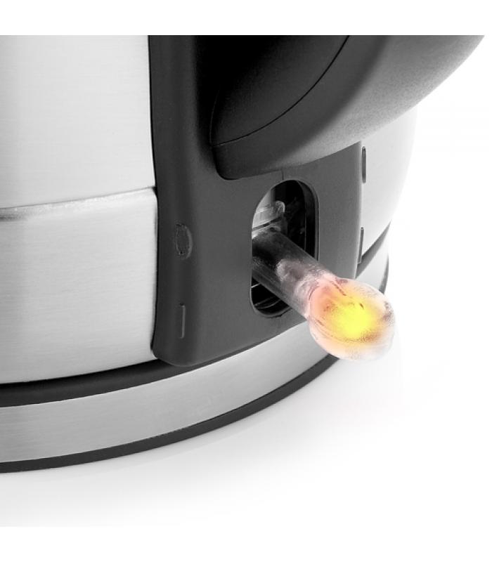 El elemento calentador oculto tiene 2200 vatios de potencia y calienta una hervidora llena muy rápido. La base de la hervidora tiene un controlador Strix de alta calidad y detalles de acero inoxidable a juego. La base de 360 grados permite que se pueda volver a colocar la hervidora fácilmente sobre ella.