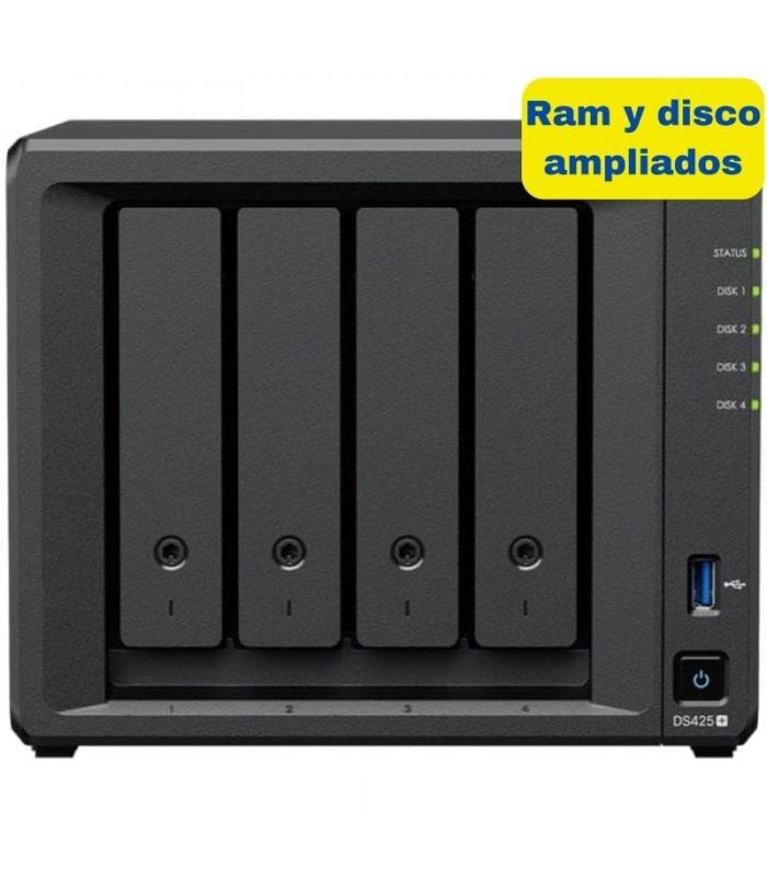 El DS425+ cuenta con redes integradas de 2.5GbE y admite tanto SSD SATA como HDD en bahías internas de 2.5'/3.5', así como unidades M.2 NVMe a través de ranuras M.2 para uso de caché