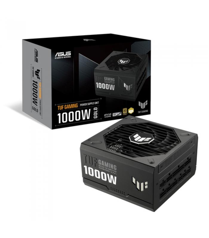 ASUS TUF Gaming 1000W Gold. Potencia total: 1000 W, Voltaje de entrada AC: 100 - 240 V, Potencia combinada (3,3 V): 130 W. Alimentador de energía para tarjeta madre: 20+4 pin ATX, Longitud del cable de alimentación de la placa base: 61 cm, Longitud del cable de alimentación SATA: 120,400 mm. Utilizar con: PC, Factor de forma de fuente de alimentación (PSU): ATX, Certificación 80 PLUS: 80 PLUS Gold. Color del producto: Negro, Tipo de enfriamiento: Activo, Diámetro de ventilador: 13,5 cm. Cables incluidos: Corriente alterna, CPU, PCIe, Peripheral (Molex), SATA