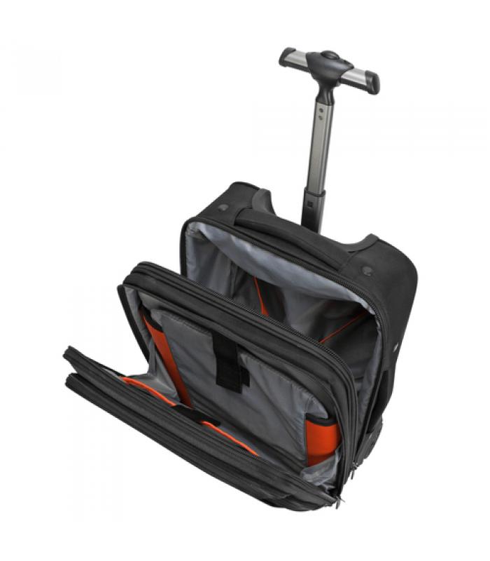 Gracias a su formato tipo trolley, este modelo permite **transportar el equipo sin esfuerzo**, evitando la carga sobre los hombros. Además, su apariencia profesional en color negro encaja perfectamente en entornos laborales.