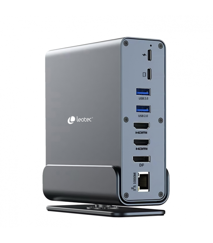 La Docking Station Leotec 15 en 1 LEDS06 es la solución definitiva para quienes buscan maximizar la conectividad y la productividad en su entorno de trabajo o entretenimiento. Diseñada en aluminio con un elegante acabado metálico y sistema de disipación de calor, este dispositivo compacto y robusto permite ampliar de forma rápida y sencilla las posibilidades de tu portátil, smartphone o tablet, adaptándose a cualquier necesidad profesional o personalSe trata de un hub universal que integra 15 puertos en una única estación, permitiendo la conexión simultánea de múltiples dispositivos y periféricos. Cuenta con puertos USB de alta velocidad, salidas de vídeo en alta resolución, lector de tarjetas, conexión Ethernet Gigabit, audio y carga rápida, todo gestionado a través de una única conexión Type-C.- Permite conectar hasta tres monitores adicionales en 4K 60Hz, ideal para multitarea, edición de vídeo, diseño gráfico o presentaciones.- Compatible con portátiles, tablets y smartphones de cualquier marca, facilitando la expansión de puertos en cualquier dispositivo.- Transferencia de datos ultrarrápida: Gracias a sus puertos USB 3.2 y USB-C de hasta 10 Gbps, podrás transferir archivos pesados en segundos.- El puerto Ethernet Gigabit asegura una conexión a internet rápida y fiable, incluso en entornos donde el WiFi es inestable.- Soporta carga rápida Power Delivery de hasta 100W, permitiendo alimentar tu dispositivo mientras usas todos los puertos.- 15 puertos en un solo dispositivo: Maximiza el espacio y reduce el desorden de cables.- Salidas HDMI y DisplayPort con soporte para 4K a 60Hz.- Fabricado en aluminio, resistente y con excelente disipación de calor.- Compacto y ligero, ideal para llevarlo a la oficina, viajes o uso doméstico.- Plug & Play, sin necesidad de drivers adicionales.La Docking Station Leotec 15 en 1 LEDS06 es la opción recomendada para quienes necesitan una solución integral y fiable para ampliar la conectividad de sus dispositivos. Su combinación de alta velocidad, compatibilidad universal y diseño robusto la convierten en una herramienta imprescindible tanto para profesionales como para usuarios domésticos que buscan eficiencia, orden y rendimiento super15 puertos:1 x M i c r o S D +1xTF/SD 3 . 01 x U S B 3 . 0 (velocidad d e transmisión d e d a t o s 5 G b p s )1x USB-C: Power Delivery 3.0 100W máx.2x USB 2 . 02x USB 3.2 (velocidad de transmisión d e datos de 10Gbps cada uno)2x HDMI (HDMI 2.0 con una resolución d e salida máxima d e 3840x2160 @4K 60Hz)1x USB C (velocidad de transmisión de datos 10Gbps)1x Display Port (DP 1.4 con una resolución de salida máxima de 3840x2160 @4K 60Hz)1x USB C (velocidad d e transmisión d e datos 5Gbps)1x conector d e audio de 3,5 m m (compatible con auriculares y micrófono)1 x RJ45 (puerto Gigabit 10M/100M/1000Mbps)