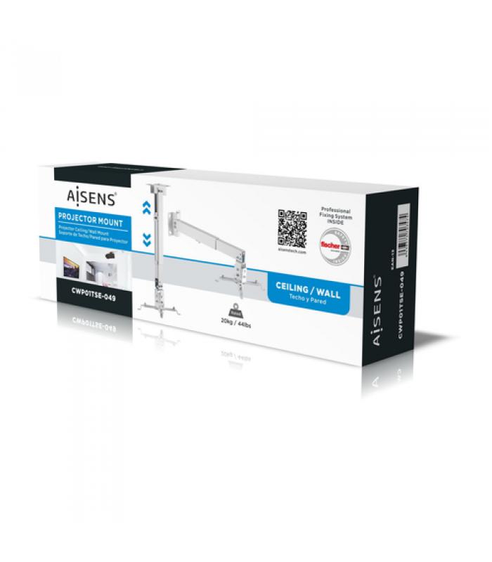 AISENS CWP01TSE-049. Tipo de montaje: Pared/techo, Capacidad máxima de peso: 20 kg, Color del producto: Blanco. Ancho del paquete: 315 mm, Profundidad del paquete: 105 mm, Altura del paquete: 60 mm
