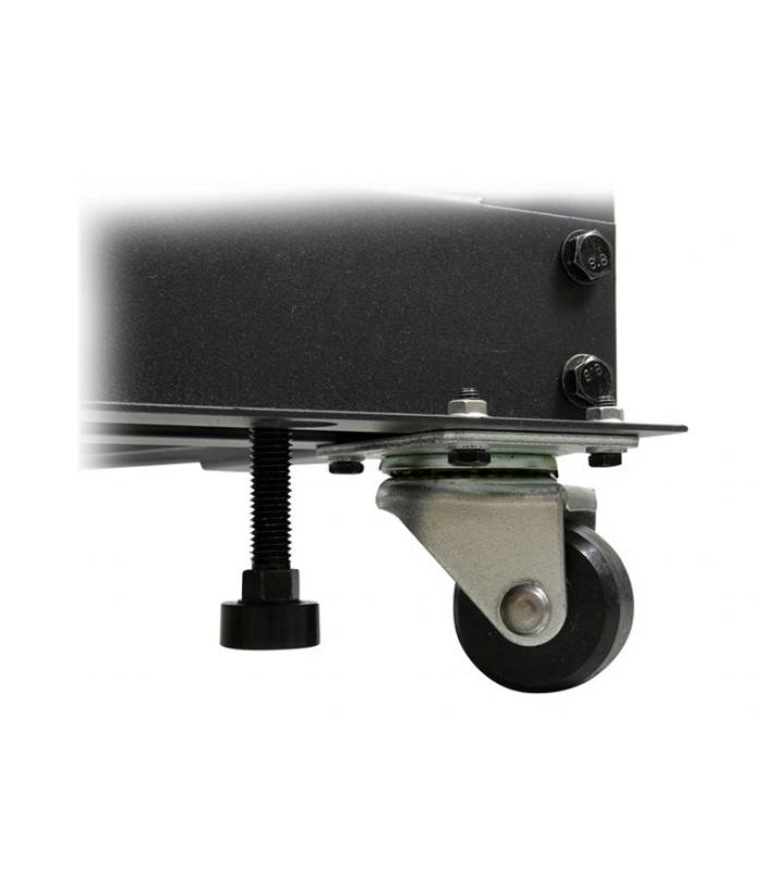 Preparado para soportar un volumen importante de equipamiento, este rack puede sostener hasta **600 kg de peso**, lo que lo convierte en una opción ideal para infraestructuras TI exigentes. Incluye **ruedas y patas niveladoras** que facilitan tanto la movilidad como la estabilidad una vez instalado.