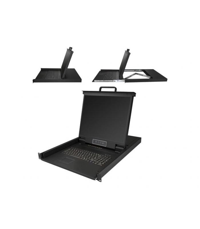 Equipada con un monitor TFT LCD de 19 pulgadas, esta consola ofrece una visualización clara y precisa para la administración de sistemas. Su resolución nativa de 1280 x 1024 y relación de contraste de 1000:1 garantizan una imagen nítida y detallada, facilitando el trabajo continuo en entornos profesionales.