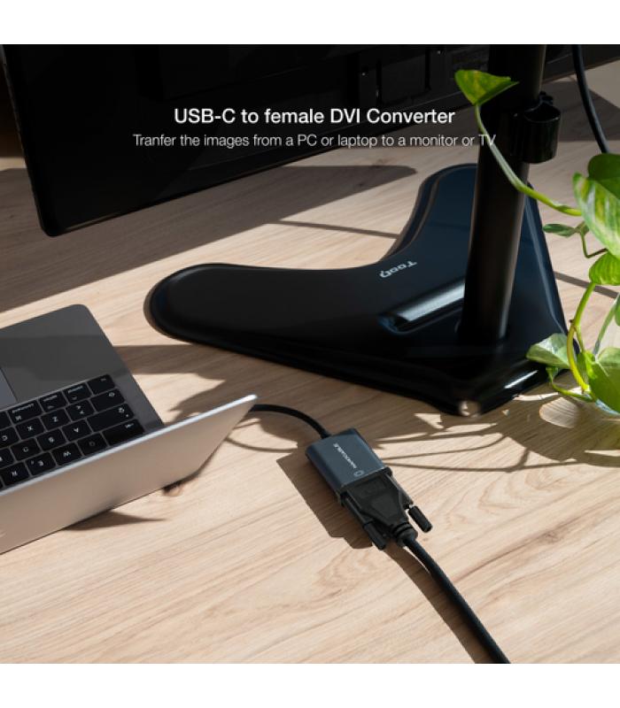 Nanocable Conversor USB-C a DVI-D, 15 cm, Gris, 0,15 m, USB Tipo C, DVI-D, Macho, Hembra, Derecho