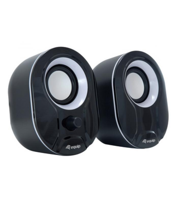 Equip 245333. Uso recomendado: PC. Canales de salida de audio: 2.0 canales. Tecnología de conectividad: Alámbrico. Potencia estimada RMS: 3 W, Rango de frecuencia: 80 - 20 Hz, Obstrucción: 40 Ω, Sensibilidad: 80 dB. Color del producto: Negro, Blanco