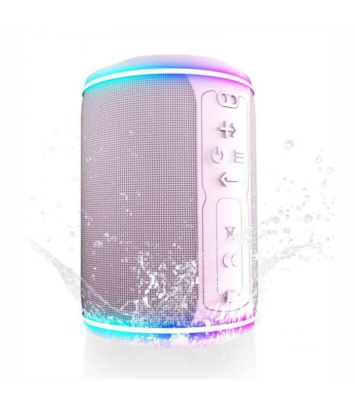 Altavoz estéreo de 16 W con diferentes secuencias de luces RGB, tecnología Bluetooth 5.1 y True Wireless Stereo para utilizar dos unidades simultáneamente. Doble membrana de realce de bajos, reproductor MP3 por USB / microSD y audio-in.