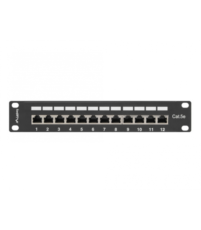 Lanberg PPF5-9012-B. Conector: RJ-45, Tipos de cable soportados: Cat5, Cat5e. Color del producto: Negro, Material: Metal, Montaje: Montaje en bastidor. Ancho: 215 mm, Altura: 44,5 mm, Profundidad: 130 mm