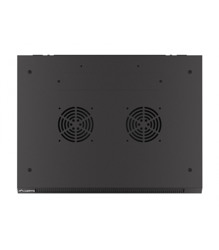 Bastidor de pared de 19 pulgadas (48,3 cm) con capacidad para 6U, diseñado para alojar equipos de red, telecomunicaciones o sistemas electrónicos en instalaciones compactas. Soporta hasta 60 kg de peso.