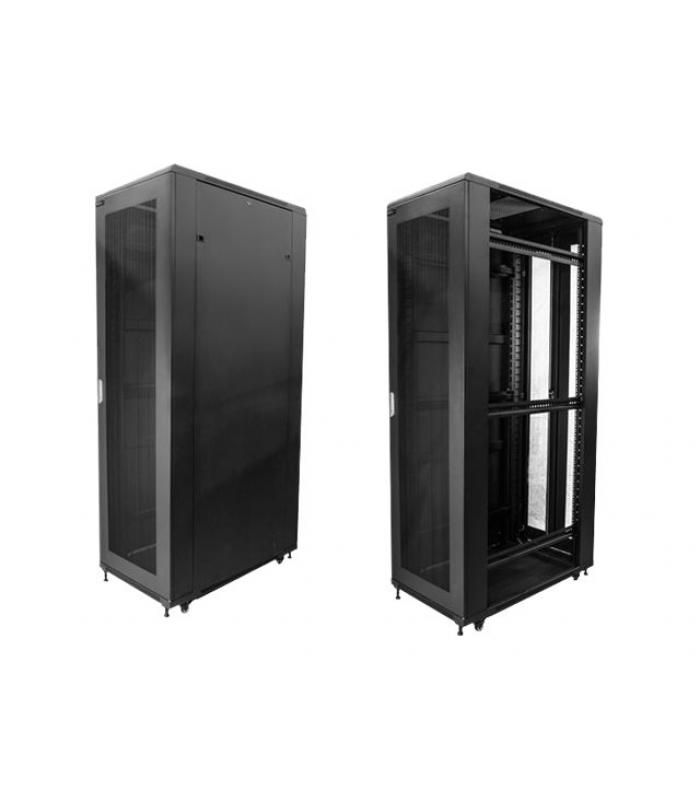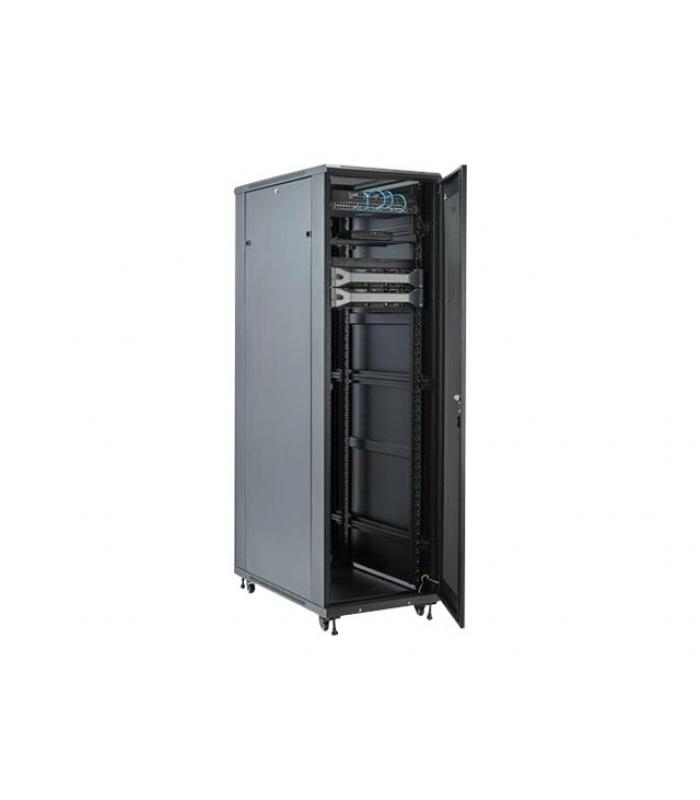 Fabricado en acero resistente, este rack ofrece una capacidad de carga de hasta 907 kg, lo que permite instalar servidores, sistemas de almacenamiento y equipos de red con total seguridad. Su diseño de 42U proporciona amplio espacio para configuraciones completas.