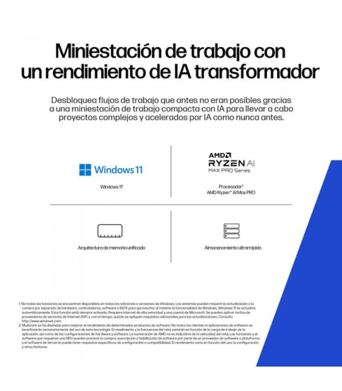 La HP Z2 Mini G1a WSL2 DS Ryzen AI Max Pro 395 es una estación de trabajo compacta diseñada para profesionales que necesitan potencia de cálculo, inteligencia artificial integrada y amplia conectividad en un formato mini. Ideal para entornos de diseño, ingeniería, creación de contenido o análisis de datos, ofrece rendimiento de alto nivel gracias a su procesador AMD Ryzen AI Max+ Pro y a su configuración de memoria y almacenamiento de primer nivel.