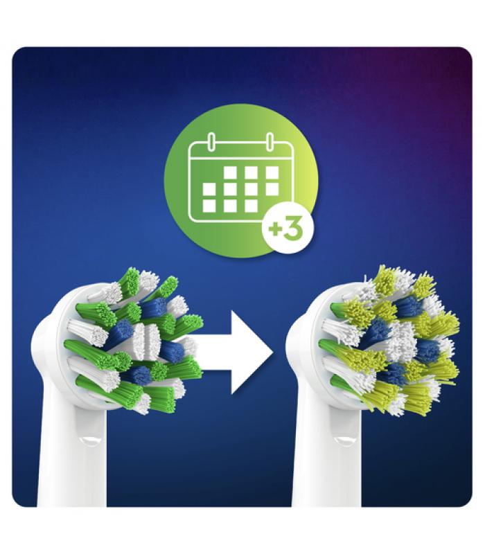 dientes manual normal. los cabezales de recambio crossactión mejorados de oral - b se desarrollan con la tecnología cleanmaximiser - que vuelve verdes los filamentos amarillos para proporciónar la