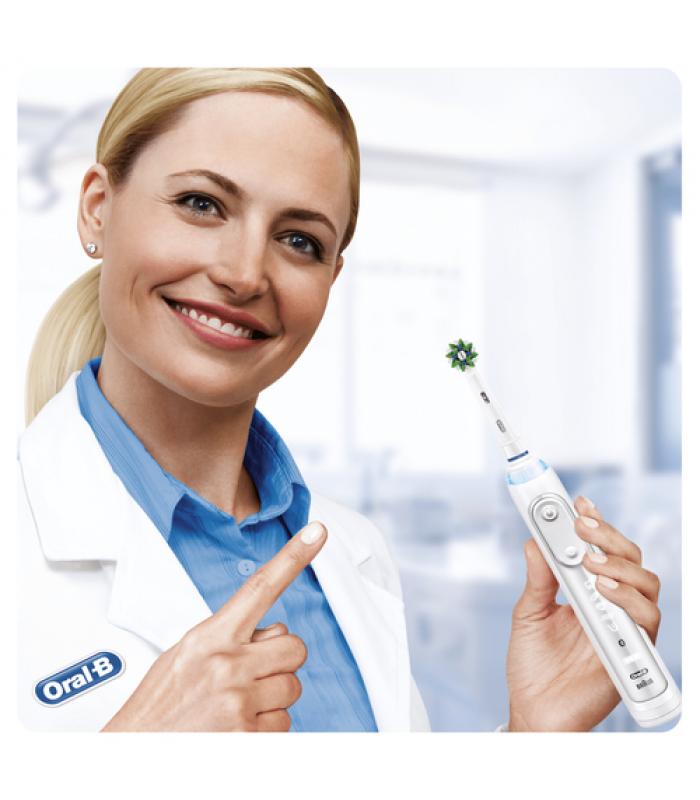 el crossactión - uno de los cabezales prémium de oral - b - cuenta con filamentos dispuestos en un ángulo perfecto de 16 grados para atacar la placa y eliminar hasta un 100 % más que un cepillo de