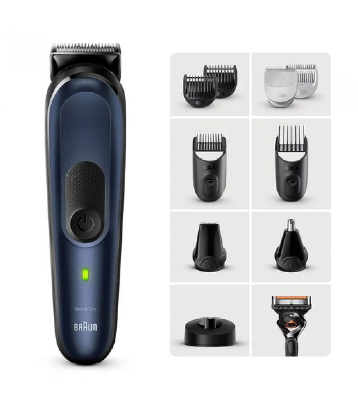 Braun Series 7 MGK7421. Color del producto: Azul, Accesorios de cuidado corporal: Barbero eléctrico, Ear trimmer, Cabezal cortador para cabello, Nose hair trimmer, Material de la cuchilla: Acero inoxidable. Fuente de energía: Batería, Tecnología de batería: Ión de litio, Tipo de batería: Batería integrada