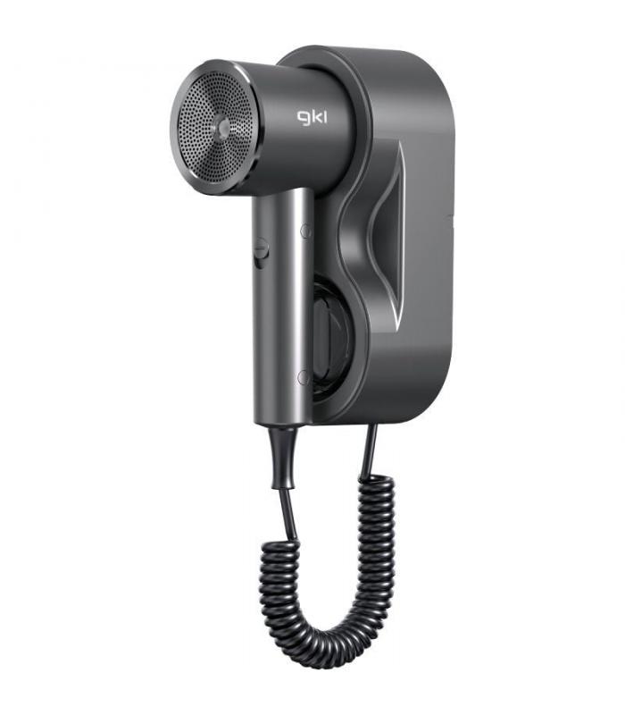 Secador mural de GKL ONYXRESORT, 1600W, 2 potencias, 3 temperaturas, concentrador, cable espiral, protección térmica e instalación fácil.