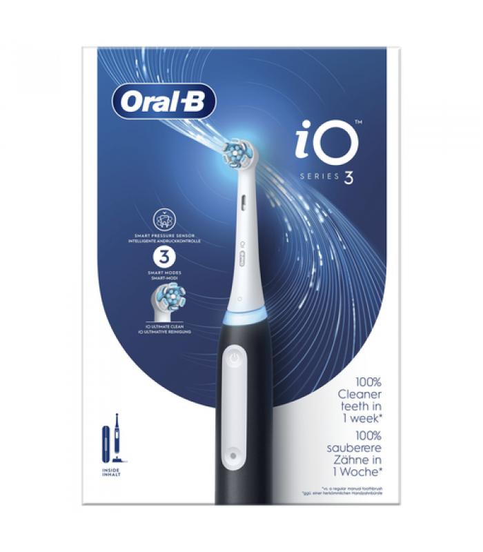 El cepillo de dientes eléctrico iO 3 incorpora la mejor tecnología de Oral-B, que combina un cabezal redondo inspirado en los cepillos profesionales con filamentos microvibrantes, para ofrecer una sensación de limpieza profesional en casa. El sensor de presión inteligente evita que te cepilles demasiado fuerte o suave para proteger mejor tus encías. El sensor de presión inteligente te avisa cuando te cepillas con demasiada presión. Cambia el cabezal de tu cepillo de dientes Oral-B iO cada 3 meses para obtener los mejores resultados.