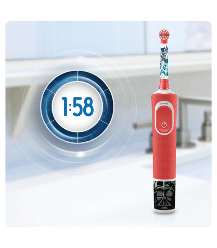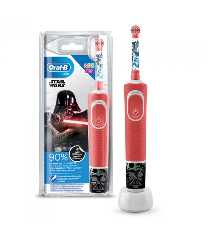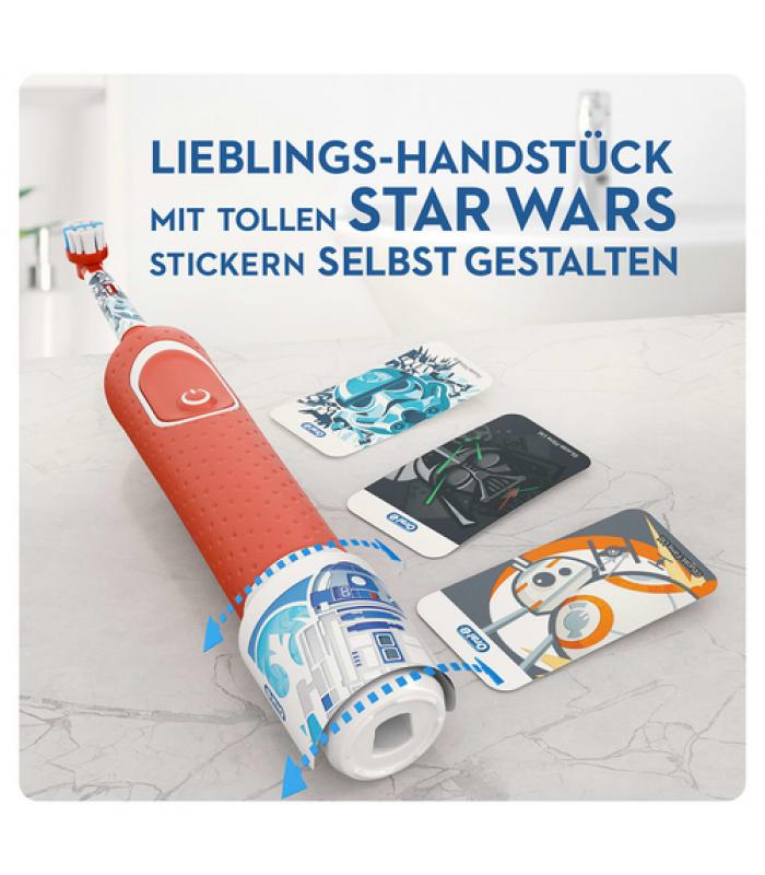 El cepillo eléctrico Oral-B Kids para niños mayores de 3 años combina la diversión de Star Wars con la limpieza suave y eficaz de un cepillo Oral-B recomendado por dentistas. Con un modo sensible único para niños, este cepillo limpia los dientes con suavidad. Elimina más placa que un cepillo de dientes manual normal. Incluye 4 pegatinas temáticas de Star Wars para personalizar el mango.