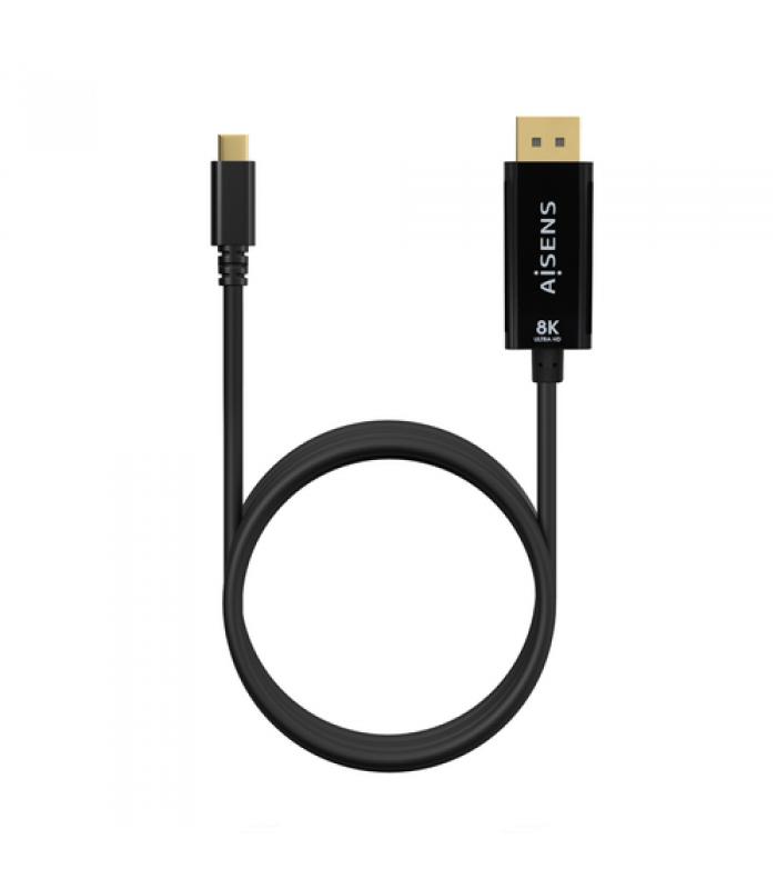 AISENS Cable Conversor USB-C a Displayport 8K@60Hz, USB-C/M-DP/M, Negro, 1.8M, 1,8 m, USB Tipo C, DisplayPort, Macho, Macho, Derecho