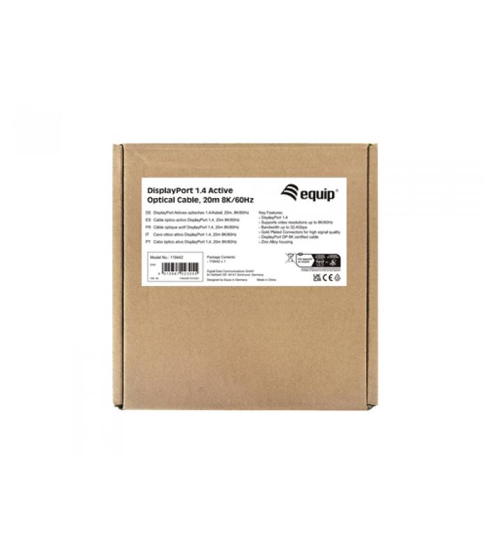 Equip 119442. Longitud de cable: 20 m, Conector 1: DisplayPort, Conector 2: DisplayPort. Peso: 510 g, Cantidad por paquete: 1 pieza(s), Ancho del paquete: 205 mm. Ancho de la caja principal: 300 mm, Longitud de la caja: 230 mm, Alto de la caja principal: 460 mm