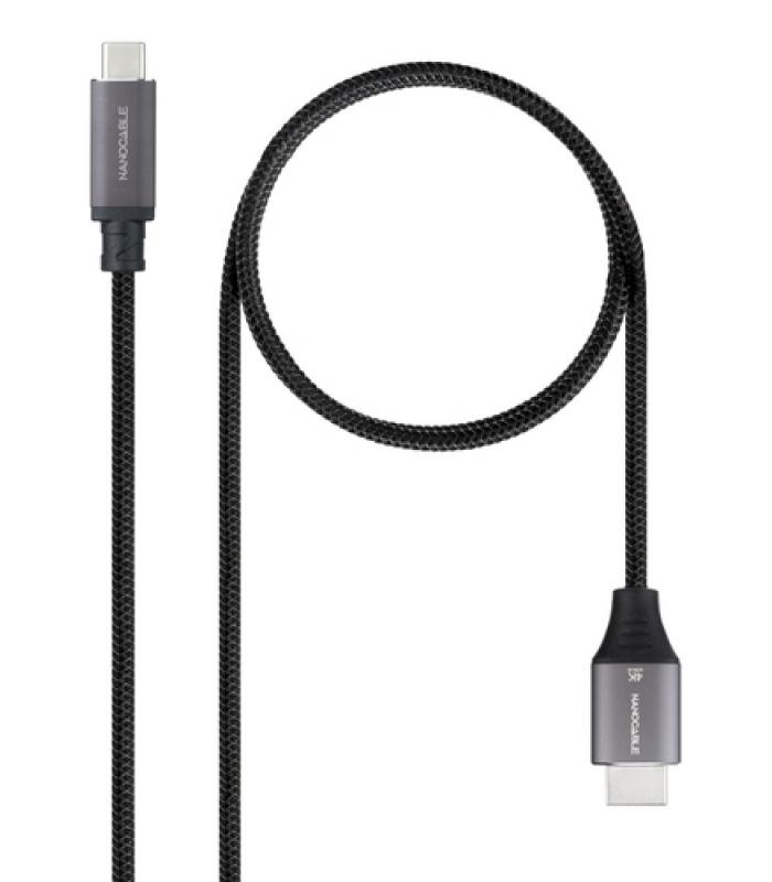 Cable conversor USB-C macho en un extremo y HDMI macho en el otro.