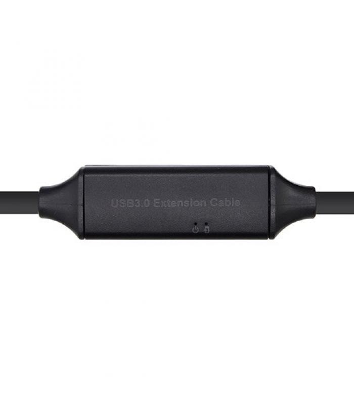 Cable prolongador USB 3.0 con conector tipo A macho en un extremo y tipo A hembra en el otro. Lleva amplificador para amplificar la señal de USB SuperSpeed USB 3.0 velocidad de transferencia de hasta 5 Gbit/s. Retrocompatible con la versión anterior USB 2.0 / 1.1. Es una solución ideal para necesidades de cable USB con Longitud de más de 10 metros hasta un máximo de 20 metros (uniendo varios cables prolongadores con amplificador). Se permite conectar un alimentador de 5V / 2A en caso de necesidad de energia adicional. (Alimentador 5V / 2A no incluido).