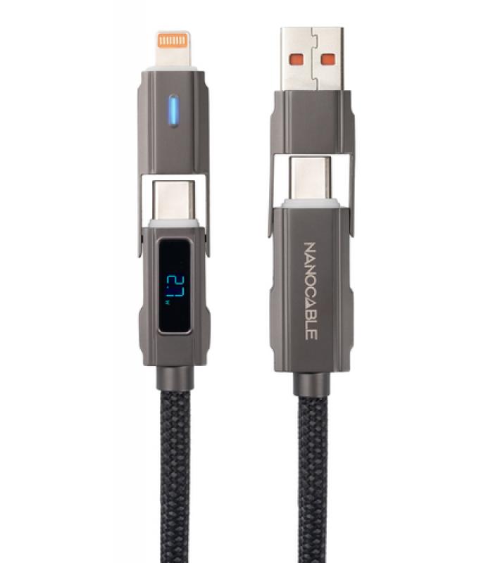 1 x Cable USB-C 2.0 27W con display digital, USB-C + USB-A a Lightning + USB-C, 1 m