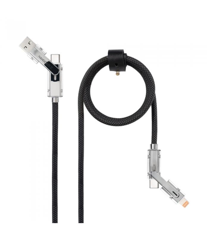 Ideal para cargar y transferir datos a dispositivos móviles o tablets gracias a su sistema de cabezales intercambiables, que permite utilizarlo tanto con USB-C como USB-A en la entrada, y Lightning o USB-C en la salida.