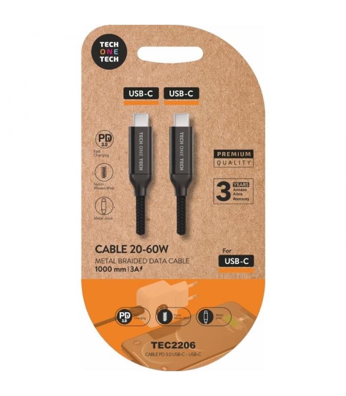 Cable USB-C negro power delivery con conexión USB-C a USB-C.