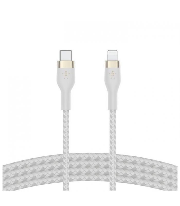 El cable Belkin Boost Charge Pro Flex está diseñado para ofrecer resistencia, flexibilidad y carga rápida en todos tus dispositivos Apple con puerto Lightning. Con un trenzado de nailon reforzado y un interior de silicona, este cable combina durabilidad extrema con un diseño elegante y práctico, ideal para uso diario en casa, la oficina o el coche.
