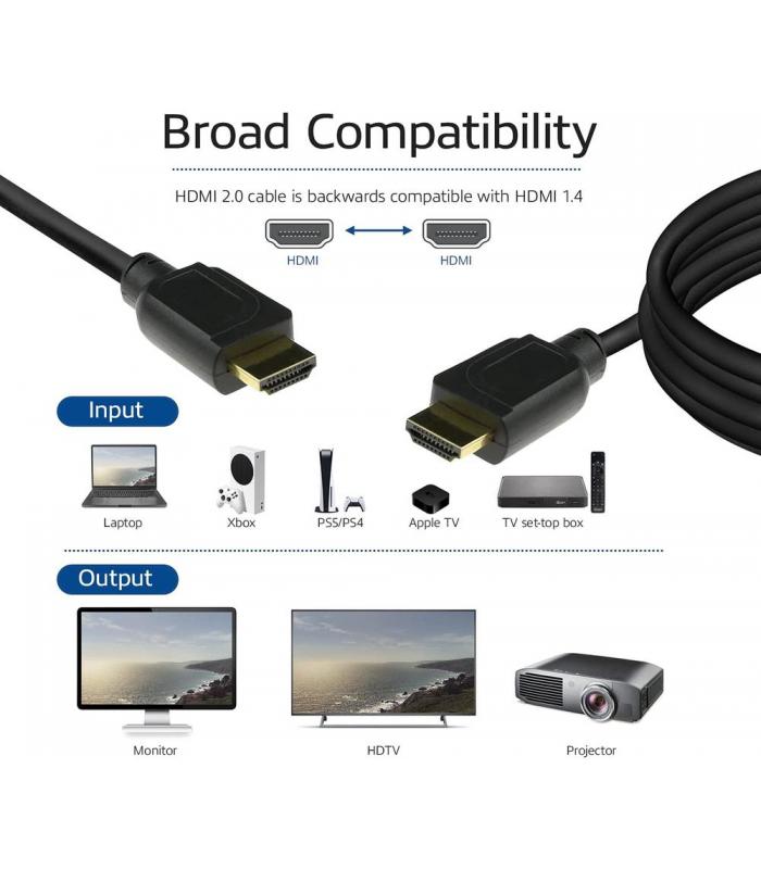 Este cable HDMI tipo A macho a macho es compatible con una amplia variedad de dispositivos. Incorpora funciones como canal de retorno de audio (ARC) y soporte para HDCP, facilitando la transmisión de contenido protegido y simplificando la conexión entre equipos.