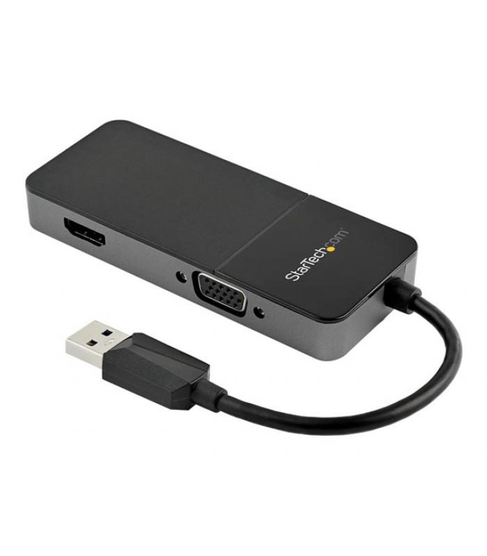 Este adaptador permite convertir un puerto USB 3.0 en salidas de vídeo HDMI y VGA, facilitando la conexión a distintos tipos de monitores o proyectores. Es una opción práctica para mejorar la productividad con configuraciones multimonitor.