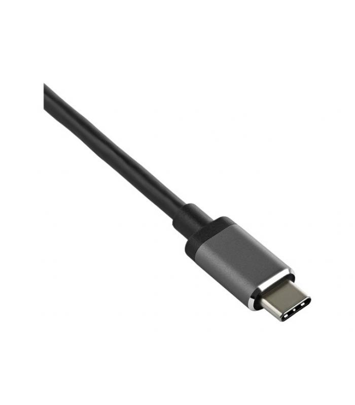 Fabricado con revestimiento de aluminio y acabado en color gris espacio, este adaptador combina durabilidad y estética profesional. Su cable de 20,5 cm facilita una conexión cómoda sin ocupar demasiado espacio.