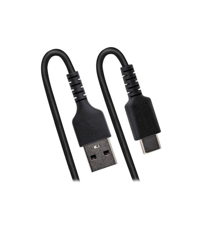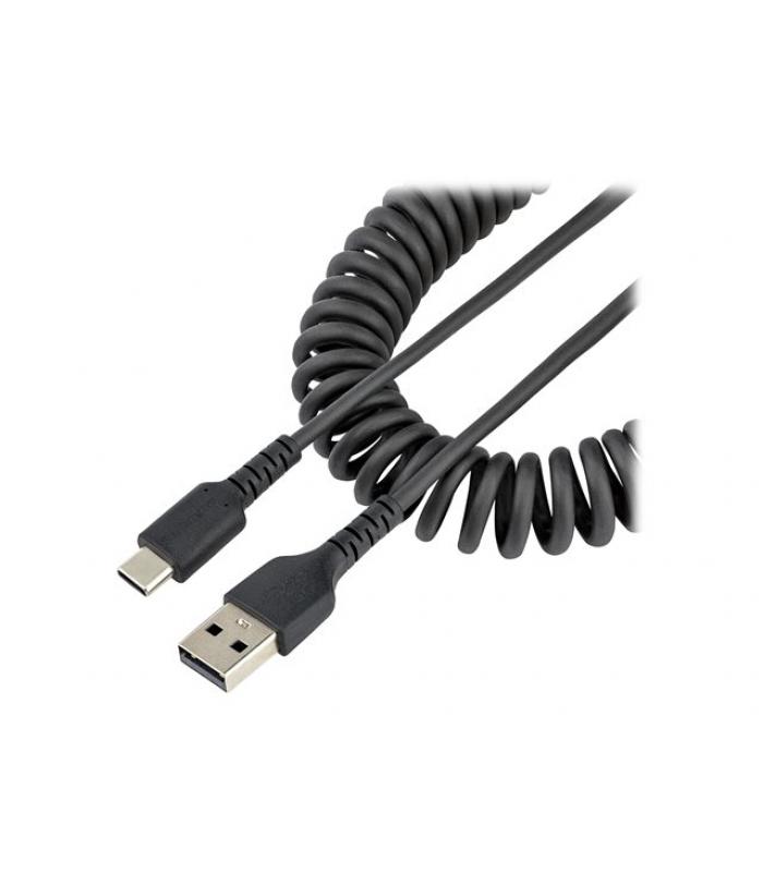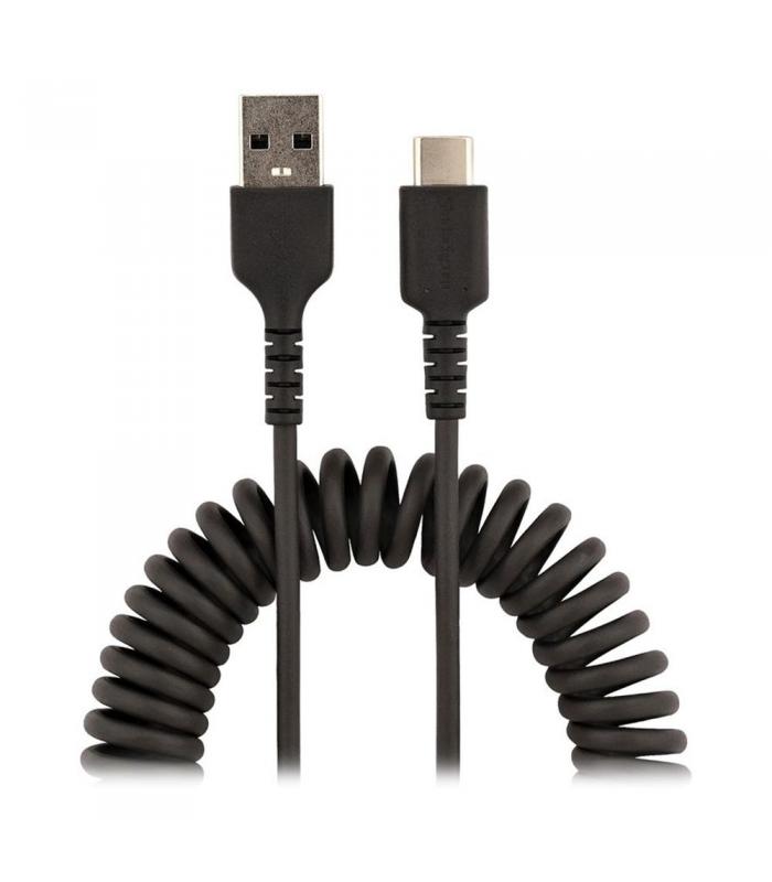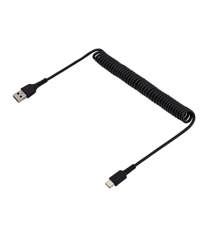 El cable USB A a USB-C StarTech.com de 1 metro está diseñado para ofrecer carga rápida, resistencia superior y fiabilidad en el uso diario. Gracias a su diseño rizado y materiales de alta calidad, es ideal tanto para entornos profesionales como para usuarios que buscan un cable duradero y compacto para dispositivos compatibles con USB-C.