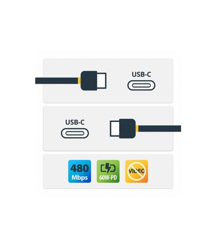 Además de cargar, este cable permite transferir datos de forma estable con una velocidad de hasta 480 Mbps, ideal para sincronizar archivos entre dispositivos USB-C de manera eficiente.