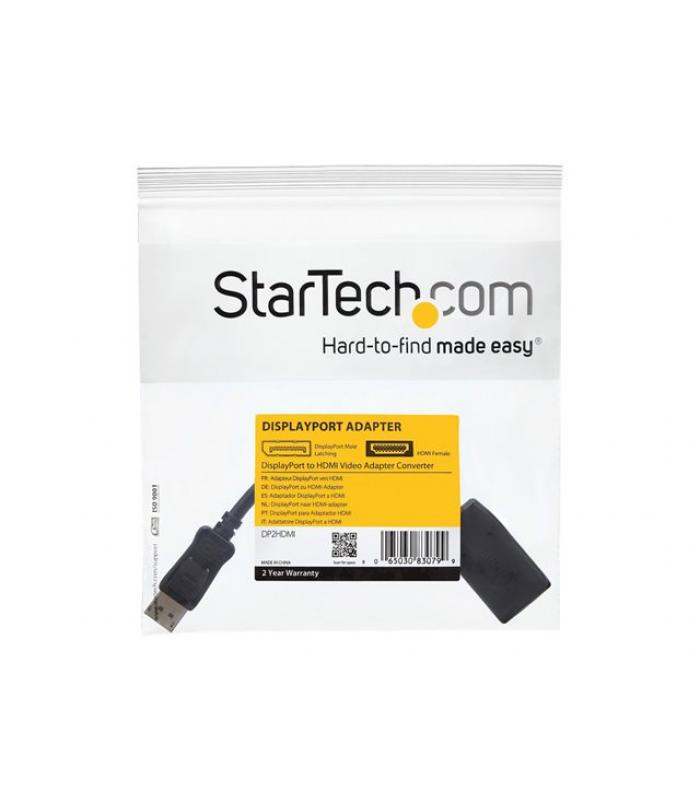 El adaptador de vídeo StarTech.com DisplayPort a HDMI es una solución práctica y eficiente para conectar dispositivos con salida DisplayPort a pantallas o monitores HDMI. Diseñado para usuarios que necesitan compatibilidad entre diferentes interfaces, este conversor pasivo ofrece una conexión fiable en un formato compacto de 24 cm, ideal para entornos profesionales o domésticos.