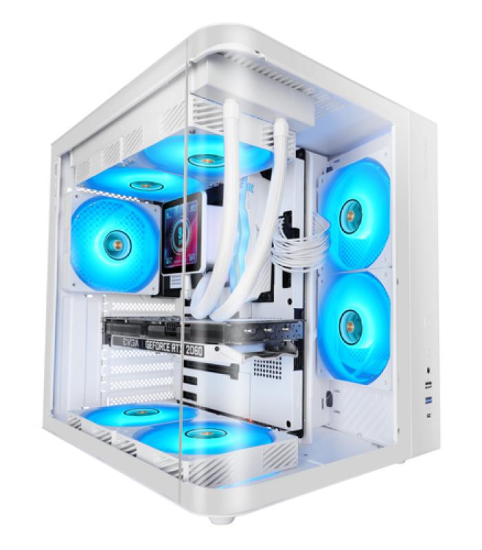 Gracias a su diseño interno de doble cámara, separa la fuente de alimentación y el almacenamiento del resto del equipo, mejorando la ventilación, simplificando la organización del cableado y aportando una estética interna más limpia y profesional.