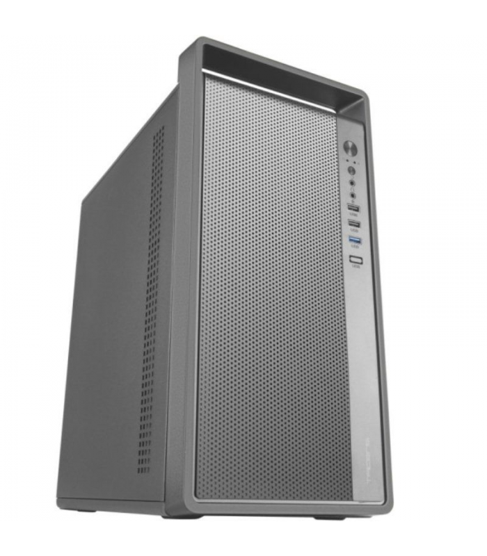 En el frontal encontrarás una conectividad sencilla y funcional para el día a día: 2× USB 2.0, 1× USB 3.0 de alta velocidad y conectores de audio HD para auriculares y micrófono. Todo está situado al alcance de la mano, ideal para conectar periféricos, memorias USB o cascos sin tener que acceder a la parte trasera del PC.