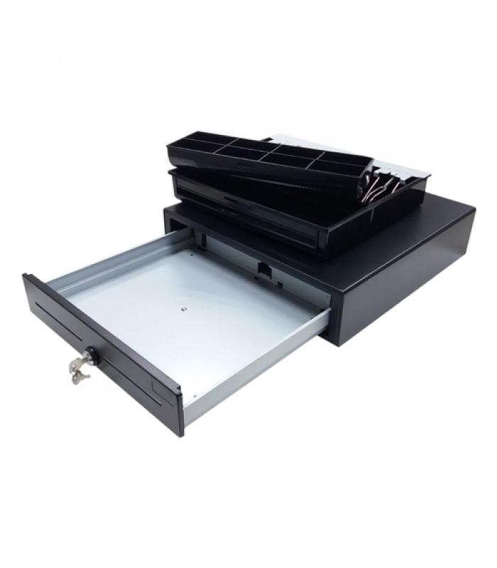 El interior del cajón está diseñado para facilitar la clasificación de efectivo con acceso rápido y seguro. Sus compartimentos bien distribuidos lo convierten en una opción práctica para todo tipo de negocios.