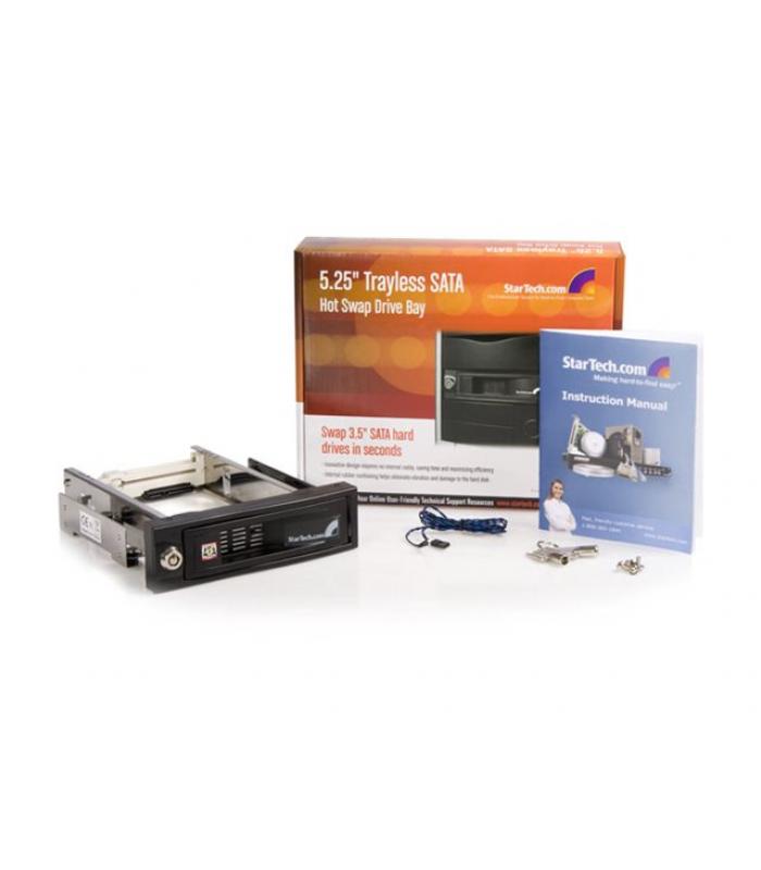 El rack móvil StarTech.com para discos duros de 3,5" es una solución práctica y profesional para gestionar unidades de almacenamiento de forma rápida y segura. Diseñado para instalarse en una bahía externa de 5,25", permite el intercambio de discos sin necesidad de bandejas, ideal para entornos técnicos, copias de seguridad o mantenimiento de sistemas.