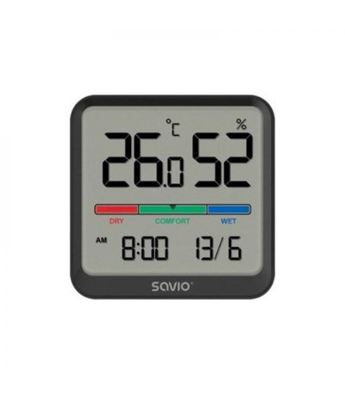 SENSOR TEMPERATURA Y HUMEDAD SAVIO CT-01 B NEGRO SOP. PARED MAGNÉTICO AHORRO PANTALLA LCD