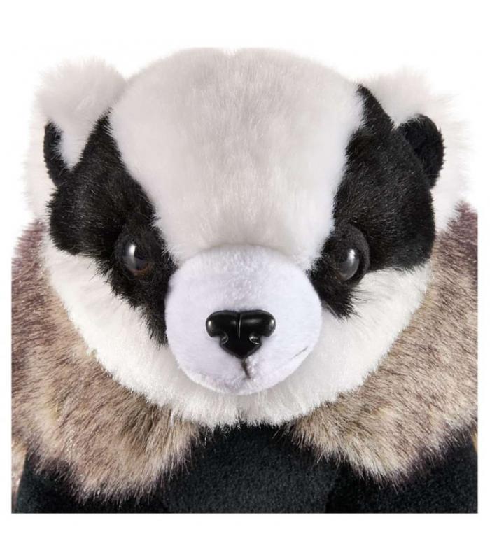 este tejón de peluche mide aproximadamente 8 de alto y presenta un escudo de hufflepuff debajo de la pata del tejón.