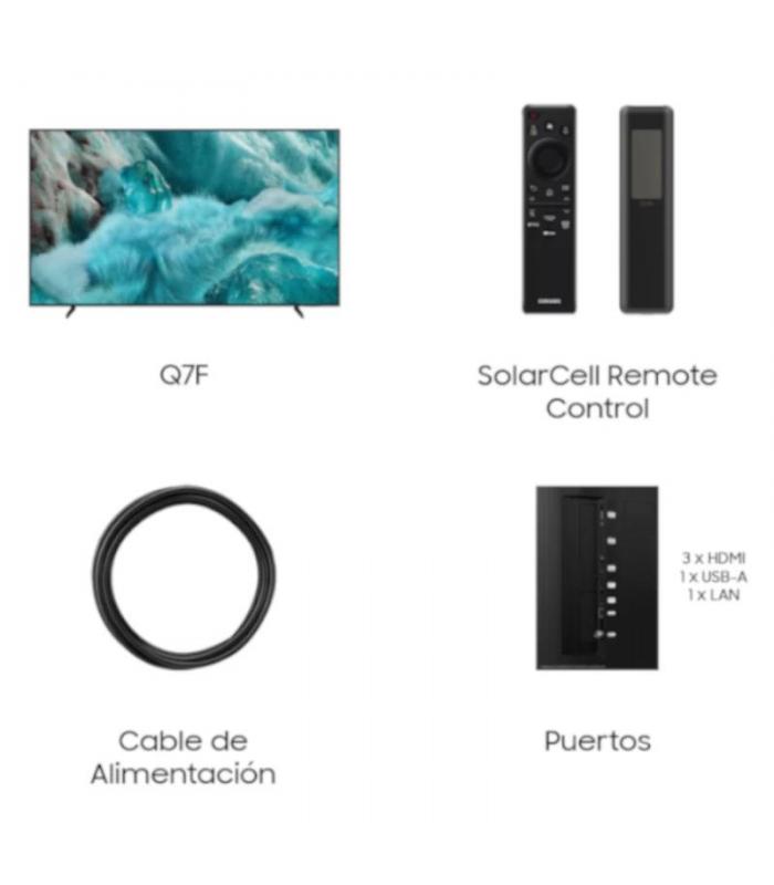 | Características | Smart TV - Sistema operativo: Tizen - Bixby - Asistente de voz integrado: Alexa y Google - Experiencia multidispositivo: Móvil a TV, inicio de duplicación de TV, duplicación de sonido, TV inalámbrica activada - Vista múltiple: Hasta 2 vídeos - AppleAirPlay: Sin Islas Aland, Islas Feroe, Antillas Neerlandesas, San Marino - Diario+ - Almacenamiento compartido - Fondo de pantalla generativo - Micrófono de karaoke Recepción - Transmisión digital: DVB-T2CS2 - Sintonizador analógico - Interfaz Común: CI+(1.4) / CI+(1.4 ECP)_IT solo - Transmisión de datos: HbbTV 2.0.4 (IT,GB,DE,CZ,SK,ES,PL,AT,FR,FI,EE,GR,SI,HR,BE,NL,LU,HU,CH,PT,DK,ME) - TV Key Sonido - Sonido de seguimiento de objetos: OTS Lite - Q-Sinfonía - Descriptor de preselección de audio - Salida de audio (RMS): 20W - Tipo de altavoz: 2 canales - Sonido adaptativo Alimentación - Fuente de alimentación: AC220-240V~ 50/60Hz - Consumo de energía (máx.): 275 W - Clase de eficiencia energética: G - Consumo de energía (Stand-by): 0.50 W - Consumo de energía (Estándar): 162 W - Consumo de energía anual (EU standard): 225 kWh - Apagado automático - Ahorro automático de energía Dimensiones y peso - 1901,2 x 1132,3 x 359 mm - 33,1 kg Accesorios - Control remoto (TM2360E) - Manual de usuario - Cable de corriente |