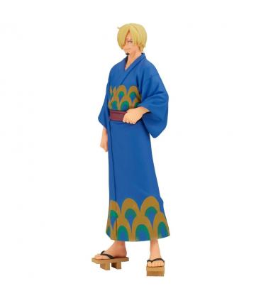banpresto presenta la figura de sanji del popular manga y anime one piece dxf the grandline series wanokuni yukata ver.. esta figura está hecha en pvc mide unos 17 cm de alto e incluye una base