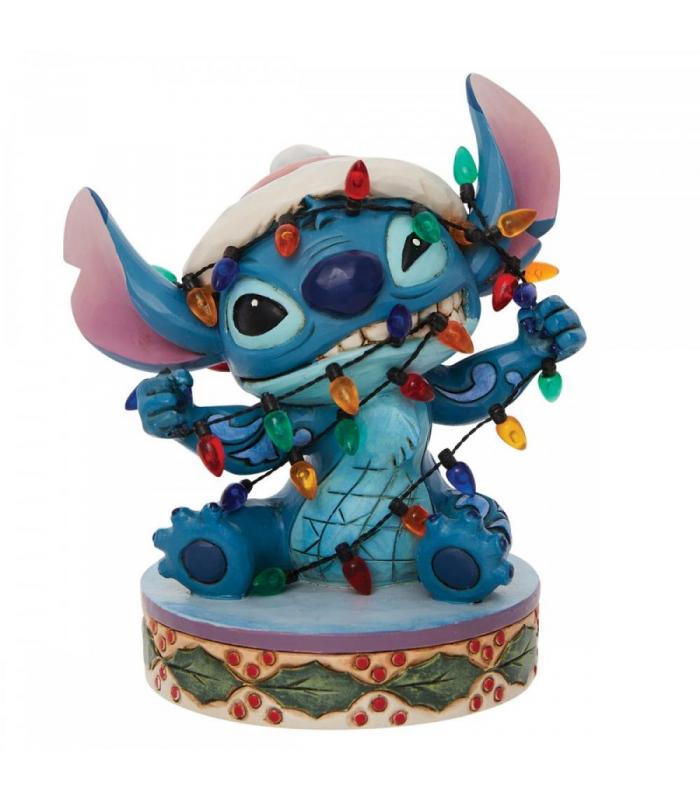 Figura festiva de stich con gorro de papá noel. al intentar ayudar con las decoraciónes navideñas - stitch se encuentra enredado con el oropel. diseñado por el galardonado artista y escultor jim shore para la marca disney traditións. estas figuras no son juguetes para niños. destinado únicamente a adultos.