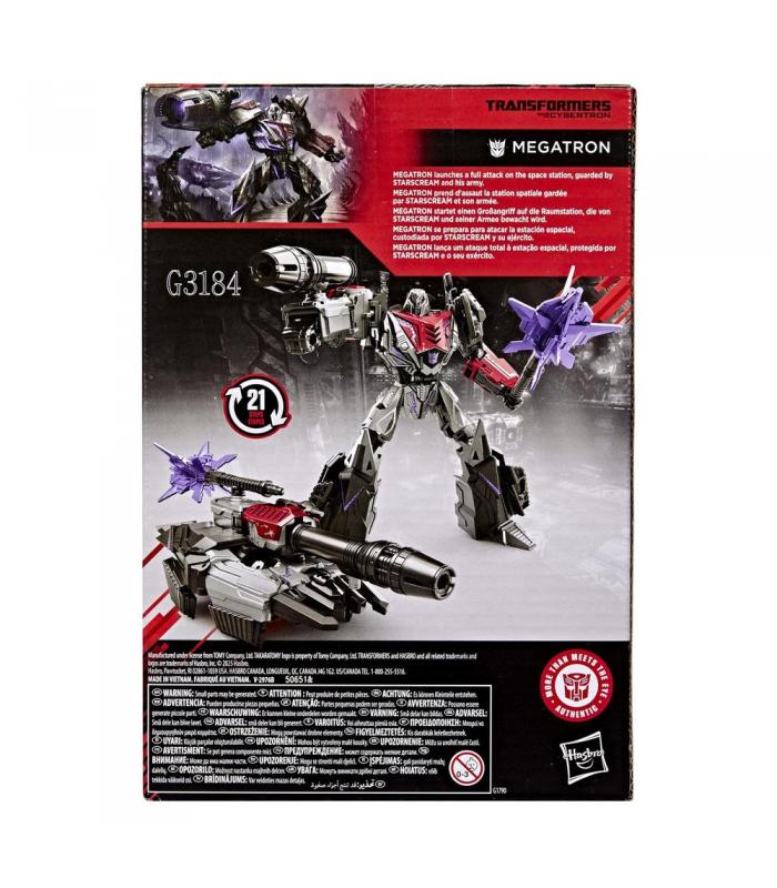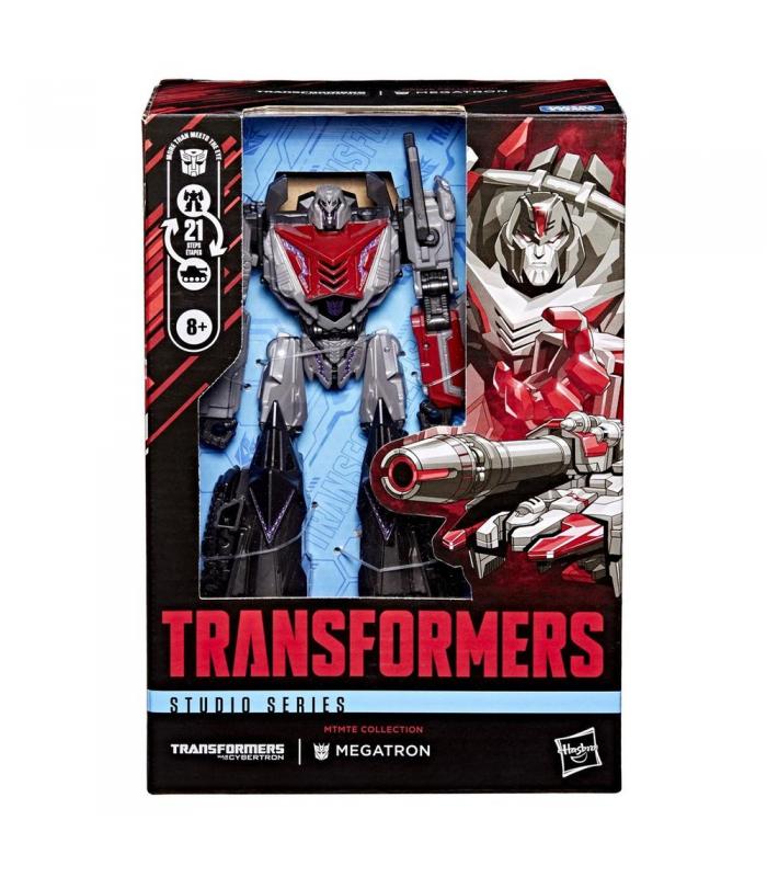 Empaquetado en caja ilustrada con ventana, ideal para coleccionistas y fans de Transformers.