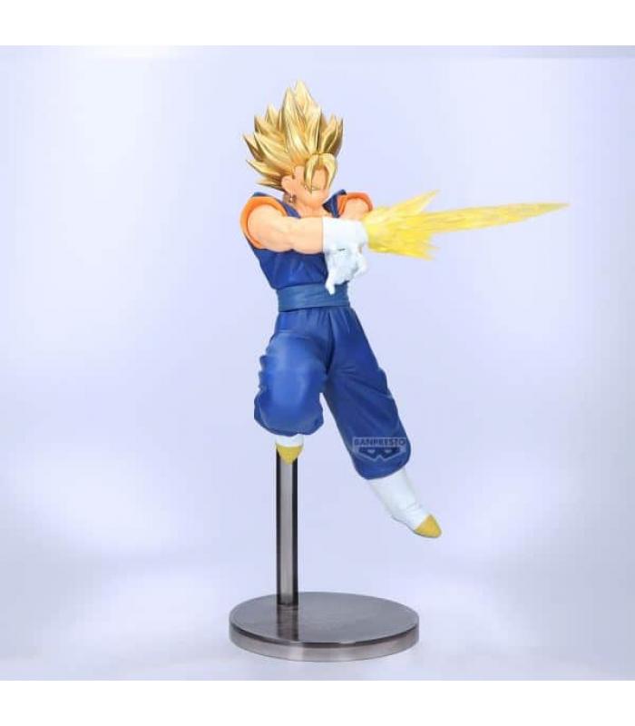 Fabricada por **Banpresto (Bandai Spirits)**, esta figura garantiza una excelente relación calidad-precio. Cada pliegue, gesto y textura está esculpido y pintado con precisión, haciendo que Vegito cobre vida con su característico cabello rubio y su imponente presencia.