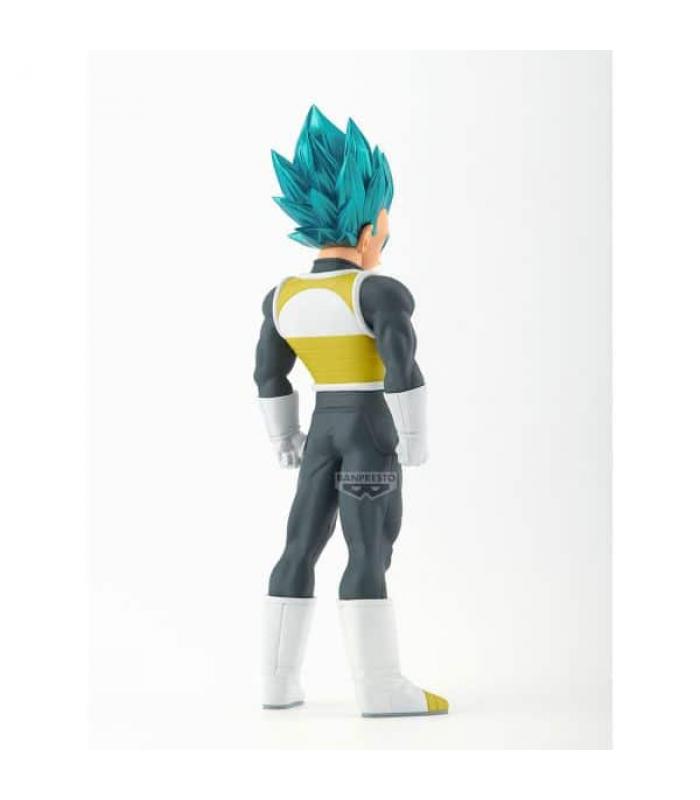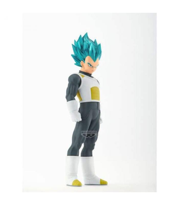 La figura representa a Vegeta con su característica actitud desafiante y su energía latente. Cada detalle, desde la musculatura hasta el peinado, ha sido cuidadosamente trabajado para reflejar fielmente al personaje en su versión más poderosa.