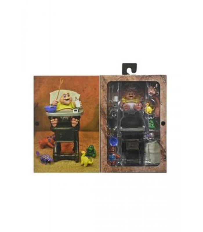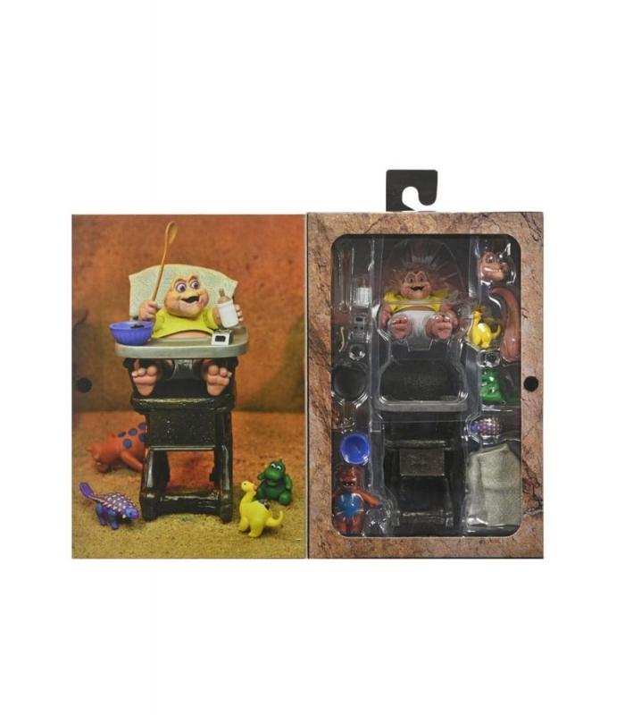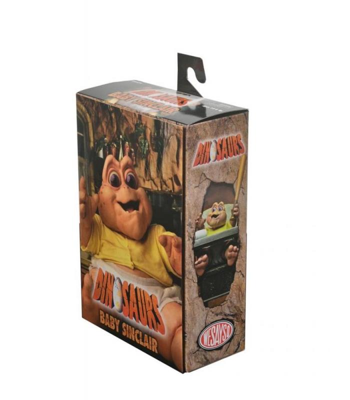 Neca presenta, dentro de la colección Scale Action, la figura de Ultimate Baby Sinclair. La figura está basada en la serie de tv ""Dinosaurs"", mide 10 cm. y está totolmente articulada. Creadas por Jim Henson para la divertida y prehistórica serie, se incluyen múltiples accesorios: 1x trona, 1x cuenco, 1x cuchara, 1x biberón, 1x cuerno de oro, 1x mando de la tele, 1x bate de béisbol, 1x galleta cavernÃcola, 1x sartén, 1x tirachinas, dinosaurios de peluche, 1x George el hipopótamo, 1x cabeza intercambiable y 4x manos opcionales.