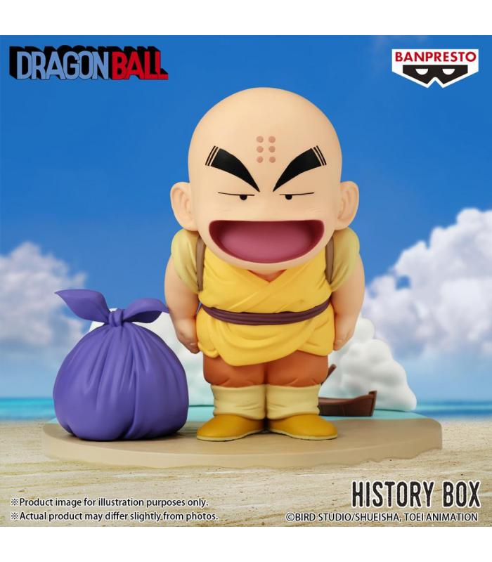 Figura de Krillin de la serie Dragon Ball, perteneciente a la colección History Box. Representa al personaje en una pose de combate clásica, rindiendo homenaje a sus momentos más memorables dentro de la saga.