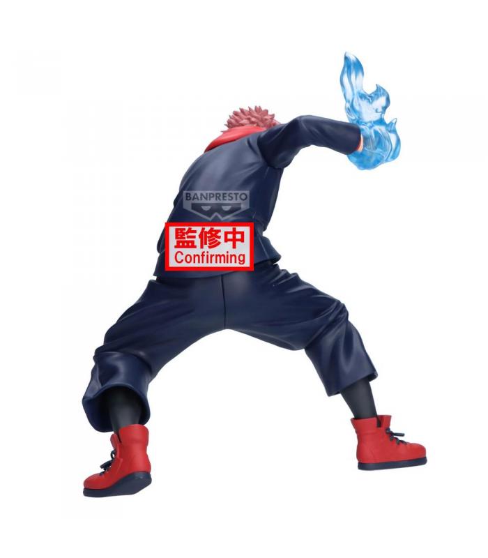La figura muestra a Yuji Itadori con su característico uniforme escolar y expresión decidida. Los pliegues de la ropa, la postura de combate y la pintura de alta calidad contribuyen a un acabado realista y atractivo.